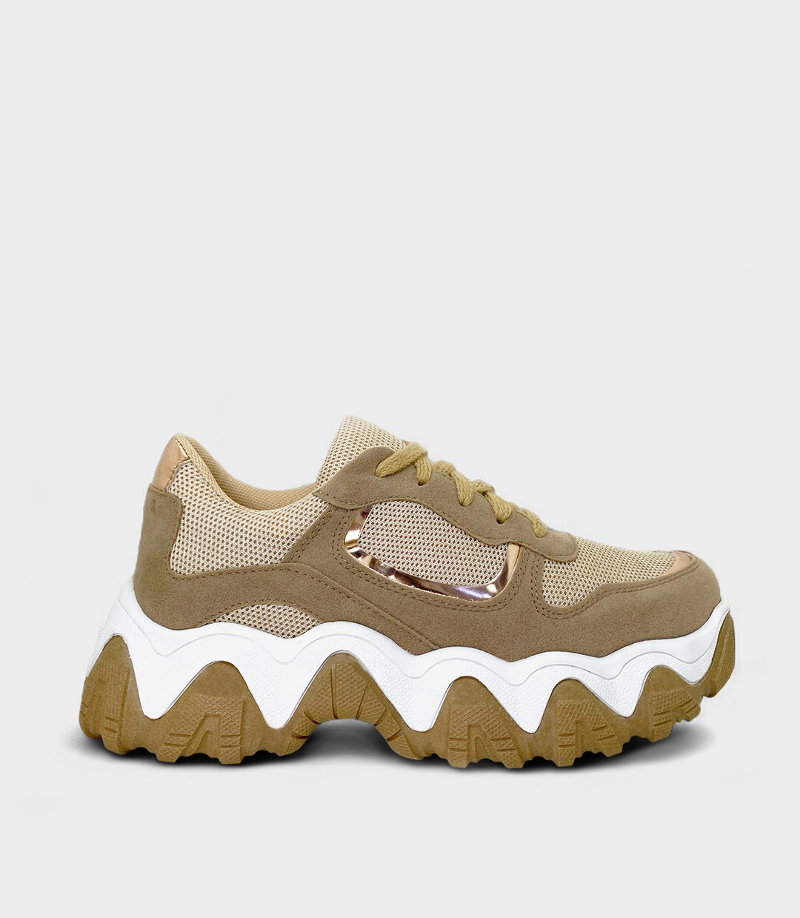 Base XL + mix de mesh y gamuza con detalles metálicos.