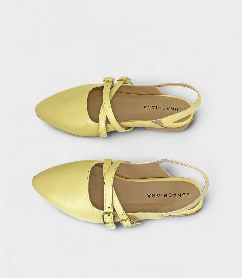 El modelo Yuli es la definición de estilo y frescura. Con un diseño de punta y detalles de tiras cruzadas, estas Mary Janes destalonadas presentan el color más trendy de la temporada: un vibrante Amarillo Pastel.