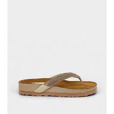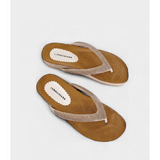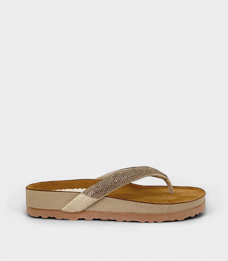 Combina una base cómoda y plana con una tira de dedo cubierta de micro-strass brillante en tono nude. Perfecta para usar en cualquier momento casual.