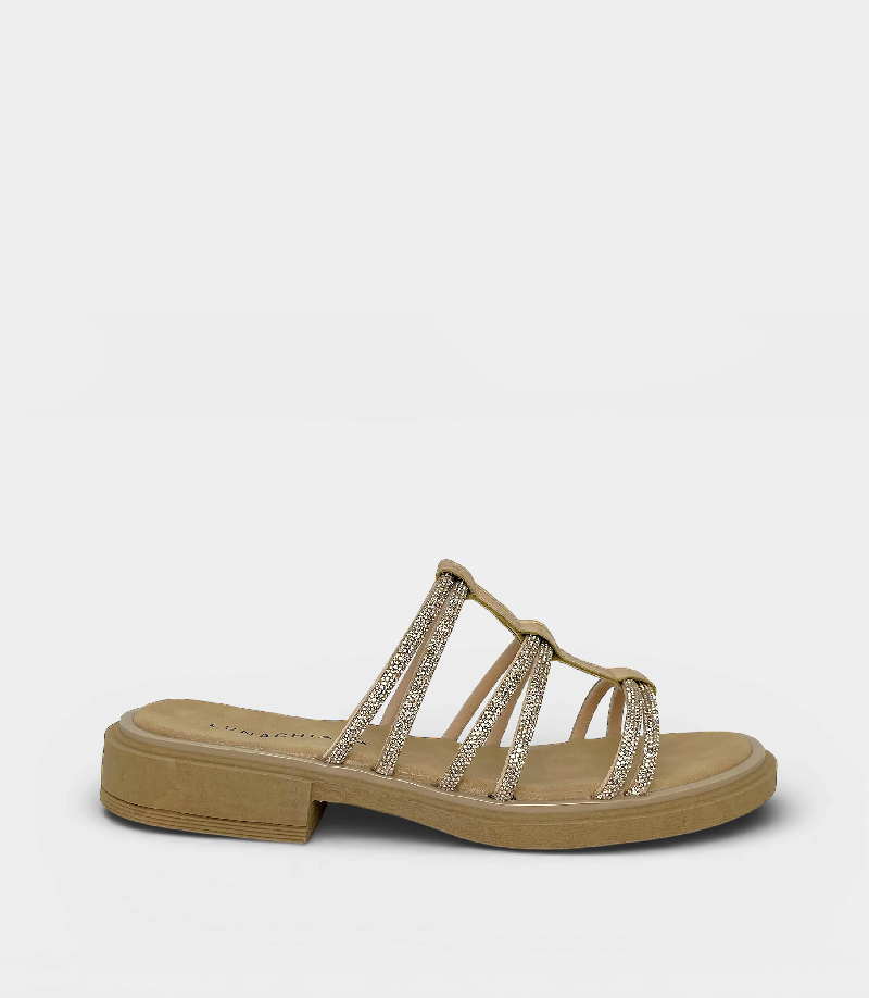 La sandalia Moni es la opción ideal para quienes buscan un modelo delicado, cómodo y con un toque de brillo para destacar en cualquier ocasión. Es un modelo abierto y liviano, muy fácil de calzar.