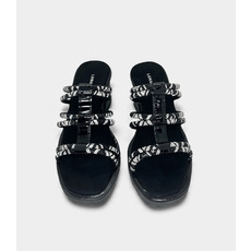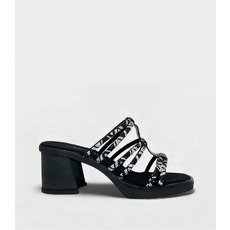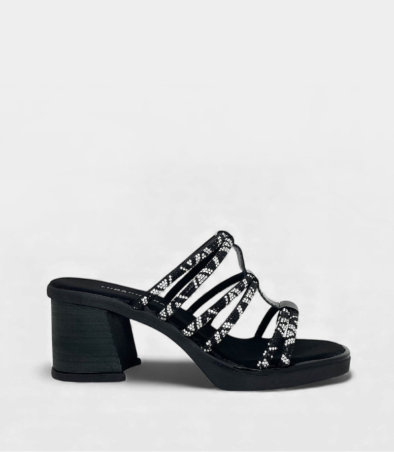 La sandalia Brenda es la elección ideal para tus looks de noche. Un diseño con taco que combina la elegancia del negro, con un toque de luz gracias a sus tiras finas cubiertas de brillos plateados.