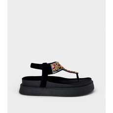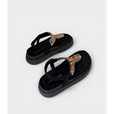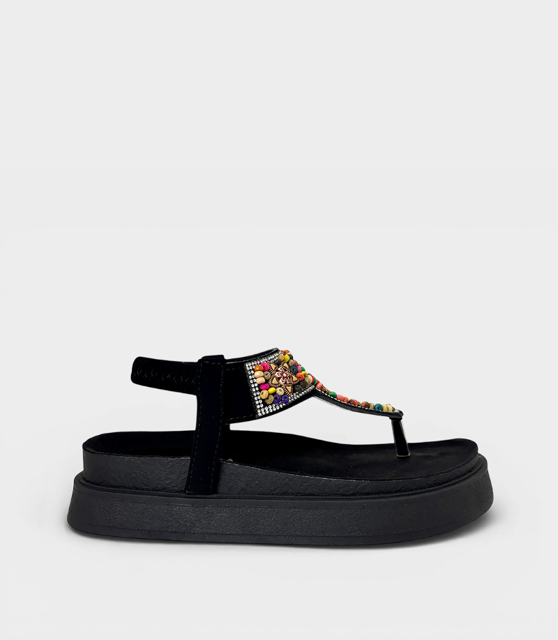 La sandalia Diana es la combinación perfecta de comodidad y estilo Boho Chic. Su diseño se complementa con tiras decoradas con cuentas y mostacillas multicolor.