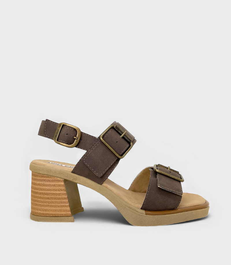 Si buscas un calzado que hable por sí mismo, la Sandalia Faruk en color chocolate es la indicada. Sus hebillas XL en tono bronce le suman mucha actitud a cualquier outfit.