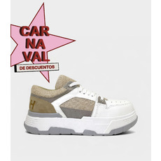 Zapatilla urbana de PU con detalles en gamuza y mesh beige. Suela chunky para mayor confort y estilo. Ideal para un look casual y moderno.