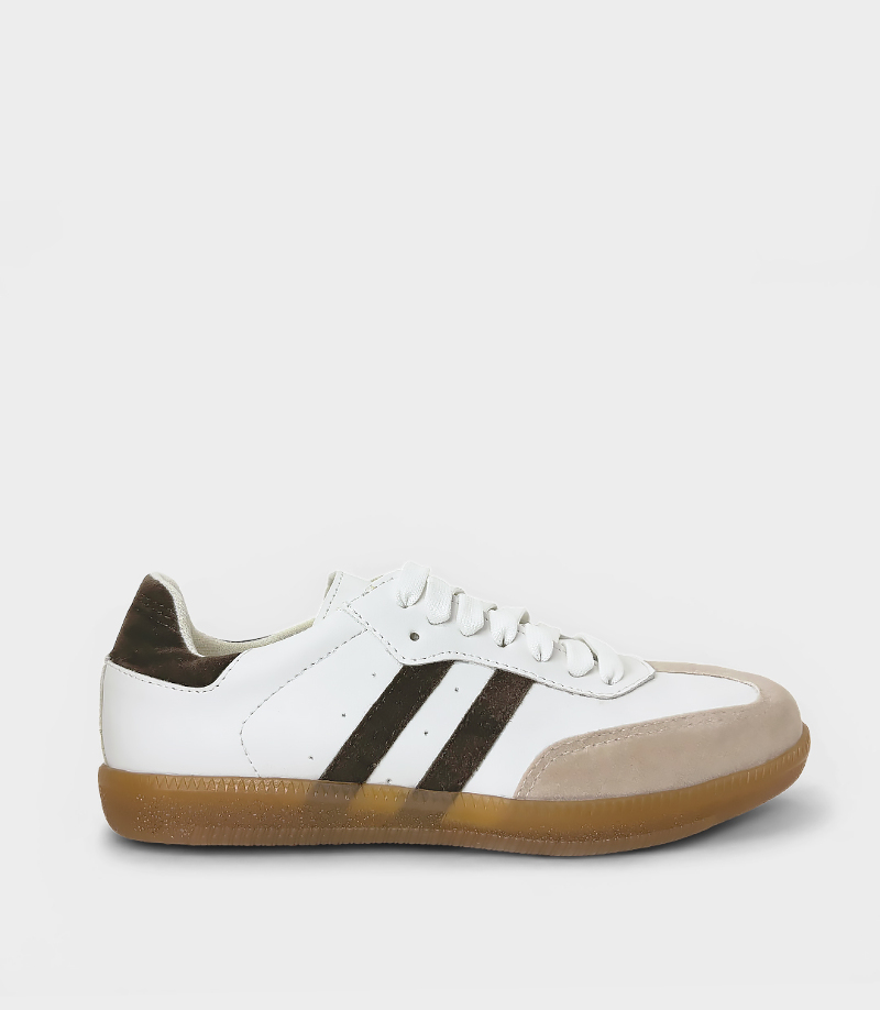 Inspirada en el ritmo de la ciudad, esta zapatilla urbana en PU, con detalle en gamuza chocolate, sigue la tendencia del invierno 2025 con una vibra actual y femenina.