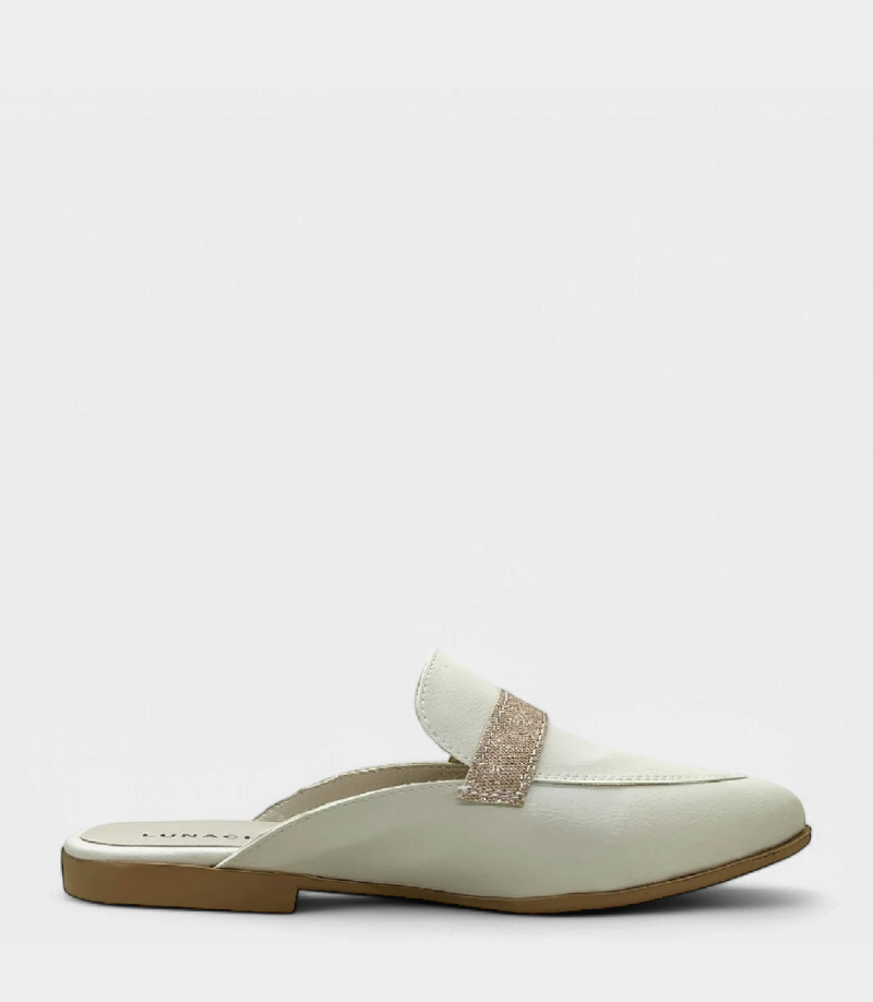 Dale un toque sofisticado a tu día con nuestros zuecos tipo mocasín. Diseñados con una elegante punta almendrada y una banda de brillo sutil en la capellada, son el equilibrio perfecto entre lo clásico y lo moderno. Su estilo abierto permite calzarlos con facilidad sin perder el estilo.