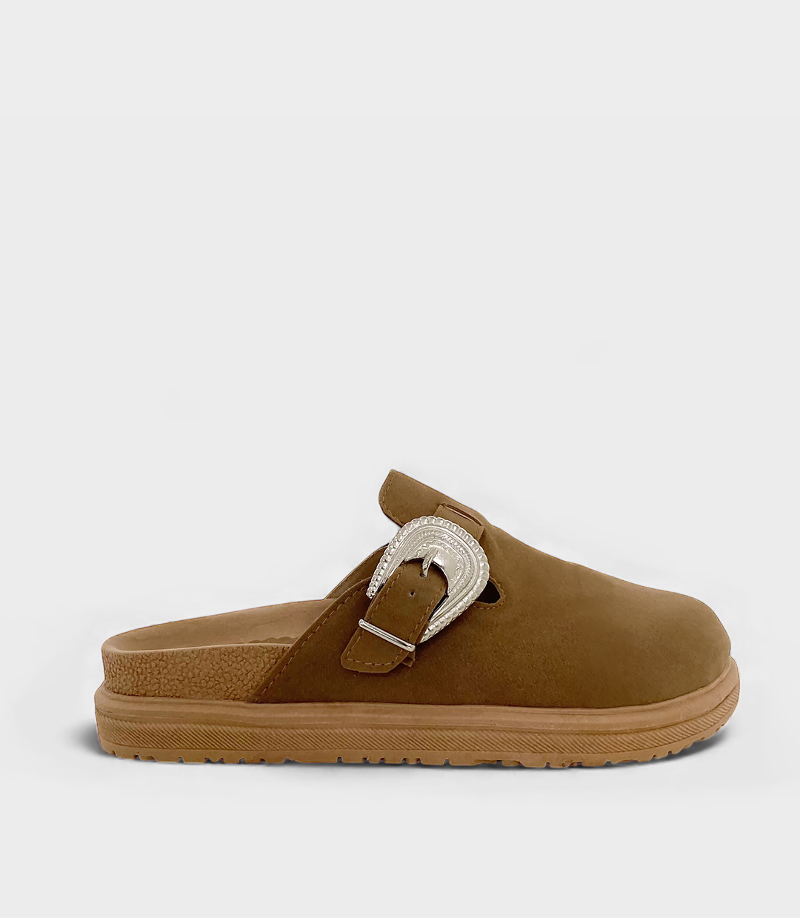 El modelo Otis es el zueco cerrado que marca tendencia, combinando el confort de su base con la suavidad de la gamuza. Ideal para un look cómodo y canchero en el día a día.