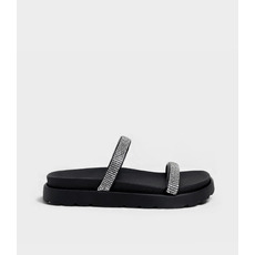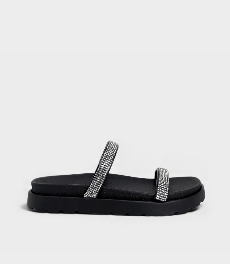Diseño: Dos tiras anchas cubiertas de pedrería strass sobre la capellada.