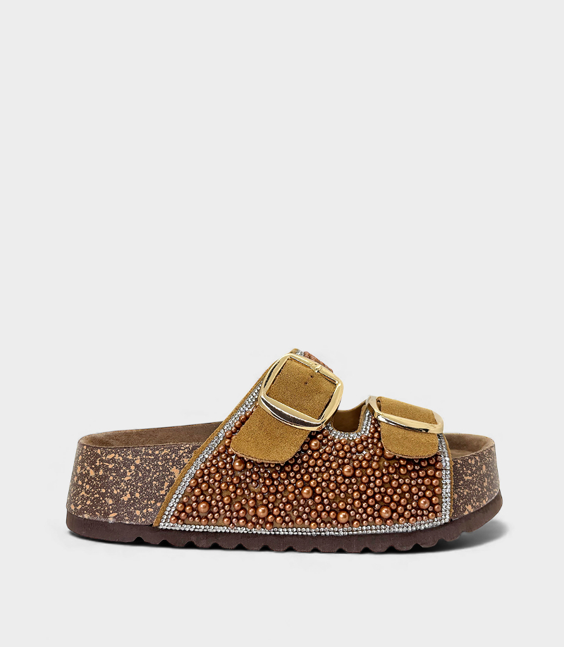 La Sandalia LUCÍA es un modelo ideal para quienes buscan estar cómodas sin perder el estilo. Su diseño de doble hebilla y su brillo la hacen perfecta para destacar cualquier conjunto.