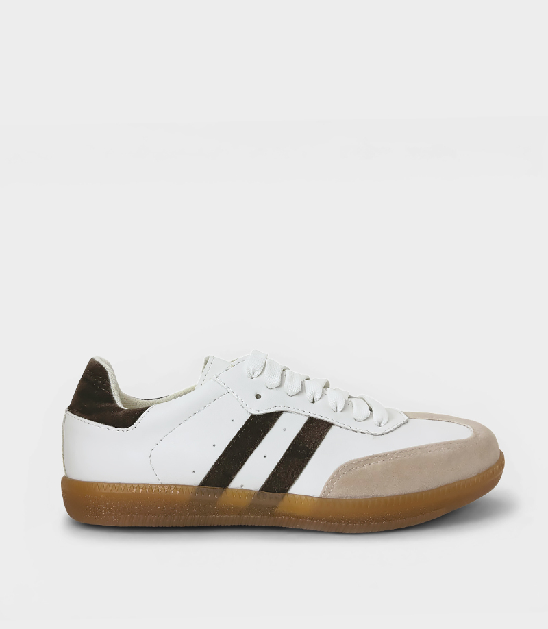 Inspirada en el ritmo de la ciudad, esta zapatilla urbana en PU, con detalle en gamuza chocolate, sigue la tendencia del invierno 2025 con una vibra actual y femenina.